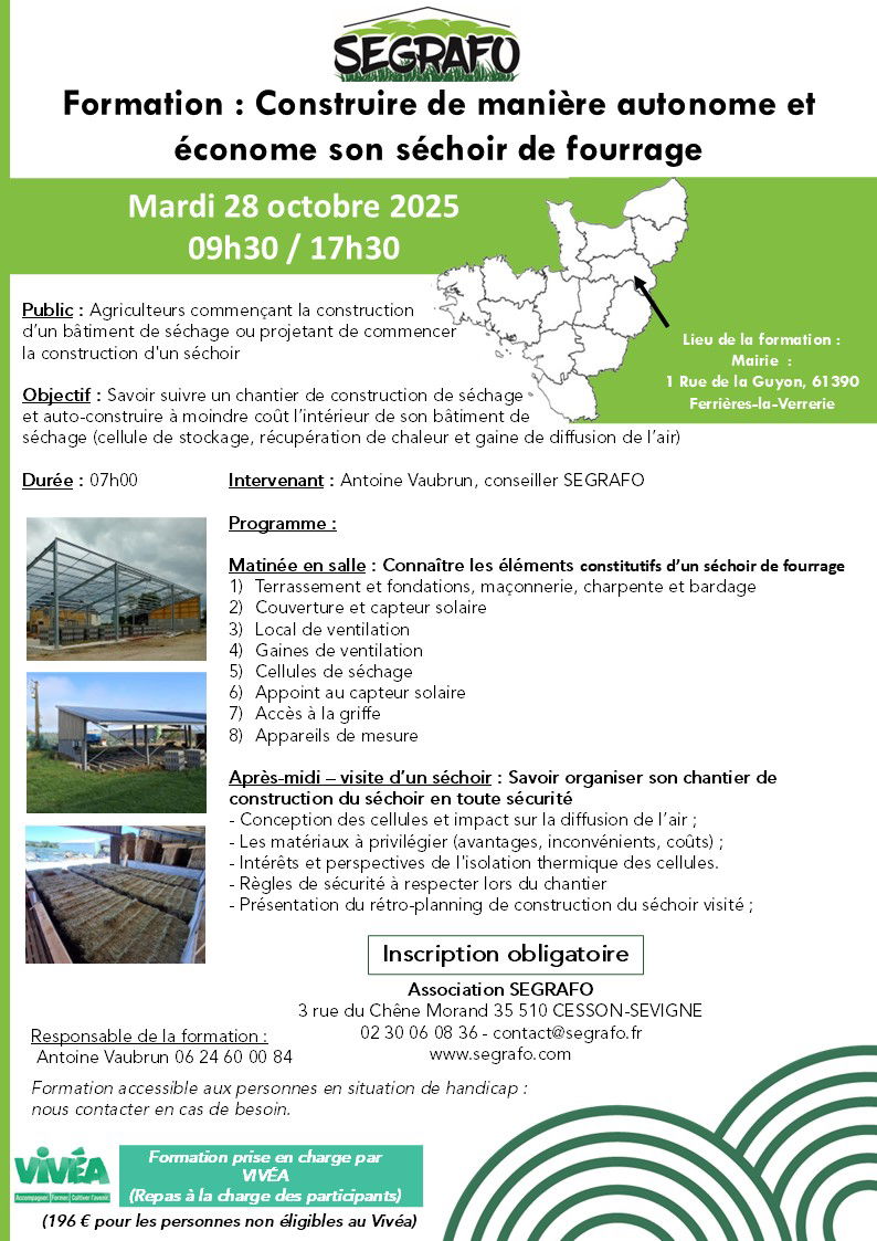 Prochaine formation : Construire de manière autonome et économe son séchoir de fourrage - Le mardi 28 octobre dans l'Orne.